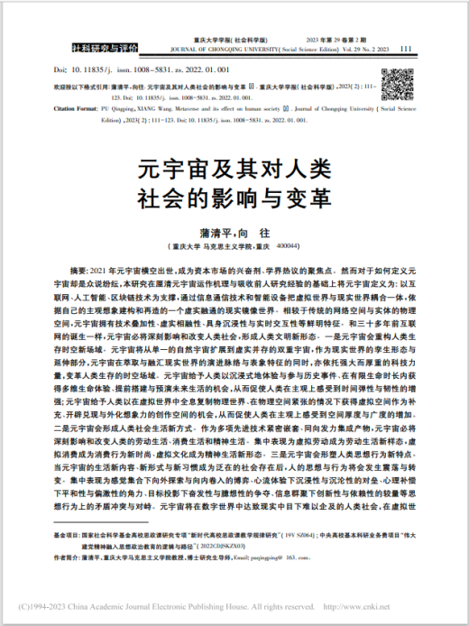 2021年元宇宙横空出世,成为资本市场的兴奋剂、学界热议的聚焦点。然而对于如何定义元宇宙却是众说纷纭,本研究在厘清元宇宙运作机理与吸收前人研究经验的基础上将元宇宙定义为:以互联网、人工智能、区块链技术为支撑,通过信息通信技术和智能设备把虚拟世界与现实世界耦合一体,依据自己的主观想象建构和再造的一个虚实融通的现实镜像世界。相较于传统的网络空间与实体的物理空间,元宇宙拥有技术叠加性、虚实相融性、具身沉浸性与实时交互性等鲜明特征。和三十多年前互联网的诞生一样,元宇宙必将深刻影响和改变人类社会,形成人类文明新形态。一是元宇宙会重构人类生存时空新场域。元宇宙将从单一的自然宇宙扩展到虚实并存的双重宇宙,作为现实世界的孪生形态与延伸部分,元宇宙在萃取与融汇现实世界的演进脉络与表象特征的同时,亦依托强大而厚重的科技力量,变革人类生存的时空场域。元宇宙给予人类以沉浸式地体验与参与历史事件、在有限生命时长内获得多维生命体验、提前搭建与预演未来生活的机会,从而促使人类在主观上感受到时间弹性与韧性的增强;元宇宙给予人类以在虚揪世界中全息复制物理世界、在物理空间紧张的情况下获得虚拟空间作为补充、开辟兑现与外化想象力的创作空间的机会,从而促使人类在主观上感受到空间厚度与广度的增加。二是元宇宙会形成人类社会生活新方式。作为多项先进技术紧密嵌套、同向发力集成产物,元宇宙必将深刻影响和改变人类的劳动生活、消费生活和精神生活。集中表现为虚拟劳动成为劳动生活新样态,虚拟消费成为消费行为新时尚、虚拟文化成为精神生活新形态。三是元宇宙会形塑人类思想行为新特点。当元宇宙的生活新内容、新形式与新习惯成为泛在的社会存在后,人的思想与行为将会发生震荡与转变。集中表现为感觉集合下向外探索与向内卷入的博弈、心流体验下沉浸性与沉沦性的对垒、心理补偿下平和性与偏激性的角力、目标投影下奋发性与臆想性的争夺、信息群聚下创新性与依赖性的较量等思想行为上的矛盾冲突与对峙。元宇宙将在数字世界中达致现实中目下难以企及的人类社会,在虚拟世界成为马克思所说的“自由人的联合体”。元宇宙于人类既是机遇,也是挑战。元宇宙营造的“沉浸式”体验不是“沉沦式”生活,不能成为成瘾式游戏生活的借口;元宇宙中社会关系、人际关系的深度虚拟化也不能切断与现实物理世界的必然联系,元宇宙构建的虚拟身份、虚拟产品、虚拟市场、虚找交易、虚拟生活、虚拟经济、虚拟人生等,不能脱离伦理、道德与法律的约束。为了确保元宇宙能够在人类社会中发挥“益化”的功效而非策动“异化”的危机,精进与完善确保元宇宙顺利落地与节能应用的底层技术,铺设与夯实防止元宇宙悖逆道德与违反法律的顶层制度,是元宇宙构建者应当思考的重要课题和使命责任。