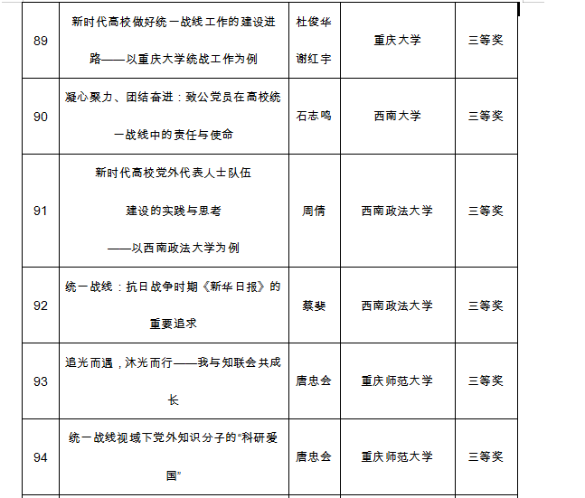 统战工作为例》获得重庆市学习习近平总书记关于做好新时代党的统一战线工作的重要思想大家谈征文活动三等奖。