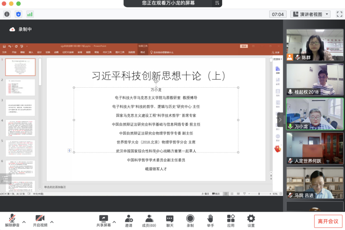 After the lecture, Prof. Liu Haitao from the School of Marxism of Shanghai Jiao Tong University, Prof. He Yue and Prof. Yang Changfu from the School of Marxism of Chongqing University carried out active academic exchanges with Prof. Wan. Students who participated in the lecture also said that, Prof. Wan linked the Secretary-general Xi Jinping's important exposition on scientific and technological innovation with regional development, industry trends and our scientific research work. They thought Prof. Wan deeply analyzed the underlying logic of the development of information technology, and broadens their vision.